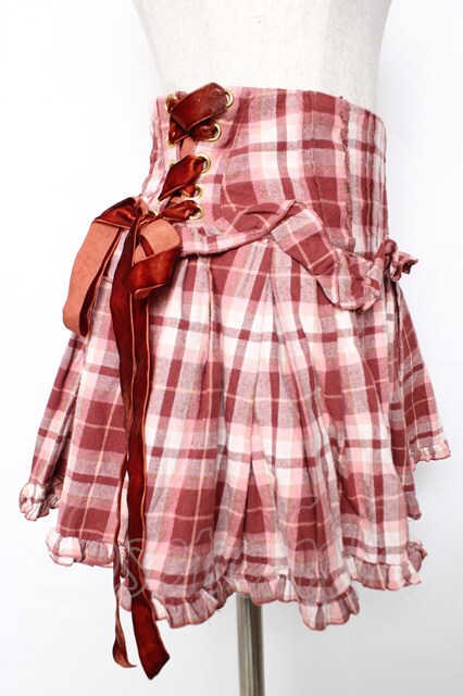 LIZ LISA / サイド編み上げチェック柄スカパン 0 ボルドー Y-25-12-08-036-LO-PA-SZ-ZY [2100070000042853-Y-25-12-08-036-LO-PA-SZ-ZY]