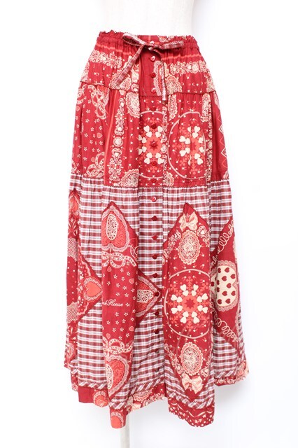 PINK HOUSE / バンダナプリントパッチワーク風スカート F 赤 Y-25-12-20-102-LO-SK-SZ-ZY [2100070000050248-Y-25-12-20-102-LO-SK-SZ-ZY]