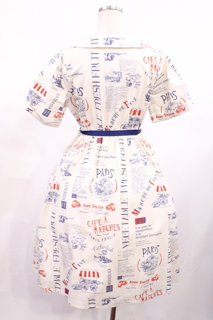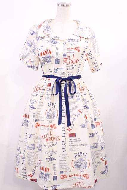 Fi.n.t / マルシェロゴプリント開衿ワンピース Free OFF×BL H-25-10-05-1013-CA-OP-NS-ZH