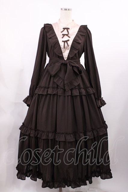 axes femme kawaii / クラシカルフリルロングワンピ M ブラウン H-25-10-05-1003-AX-OP-NS-ZH [2100030000072589-H-25-10-05-1003-AX-OP-NS-ZH]