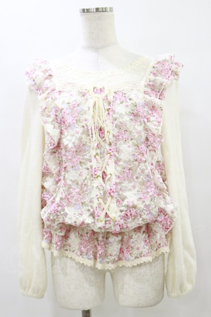 LIZ LISA / チュール切替花柄トップス Free オフ H-25-10-07-034-LO-TO-NS-ZH