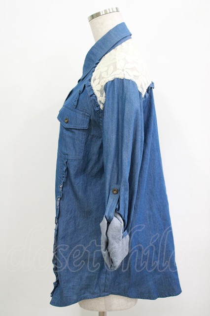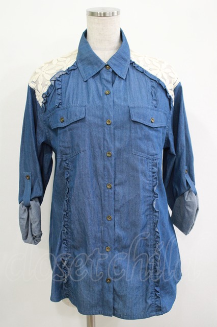 LIZ LISA / レース切替シャツ Free ブルー H-25-10-08-037-LO-BL-NS-ZH
