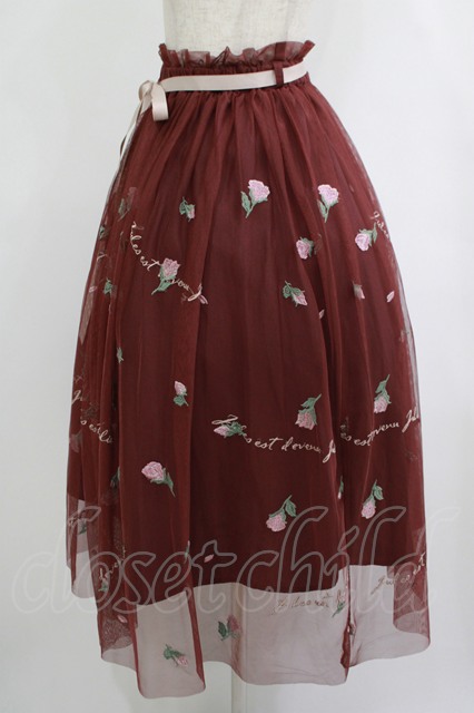 an another angelus / フラワーロゴ刺繍チュールスカート Free Bordeaux H-25-10-08-023-CA-SK-NS-ZH