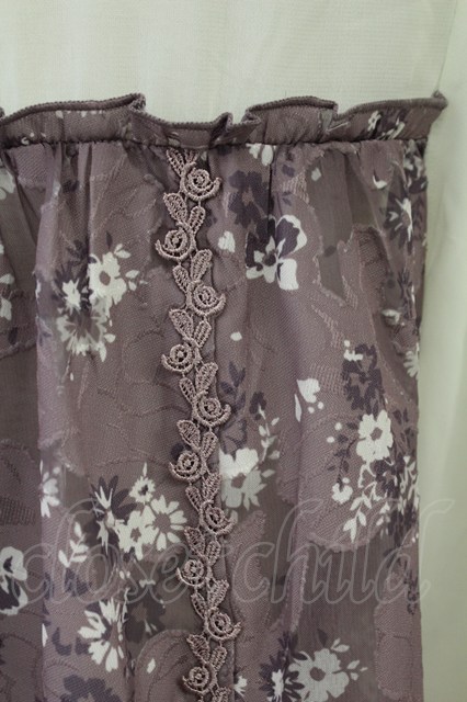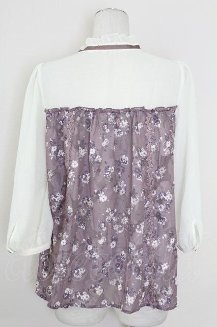 axes femme / 花柄切替シフォントップス パープルxオフ T-25-10-01-015-AX-TO-HS-ZT