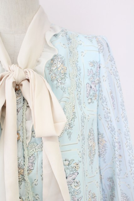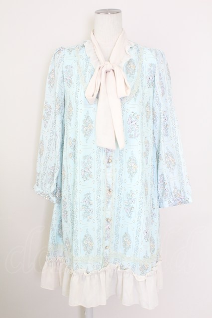 axes femme / フラワーフレームボータイワンピース サックス T-25-10-01-034-AX-OP-HS-ZT