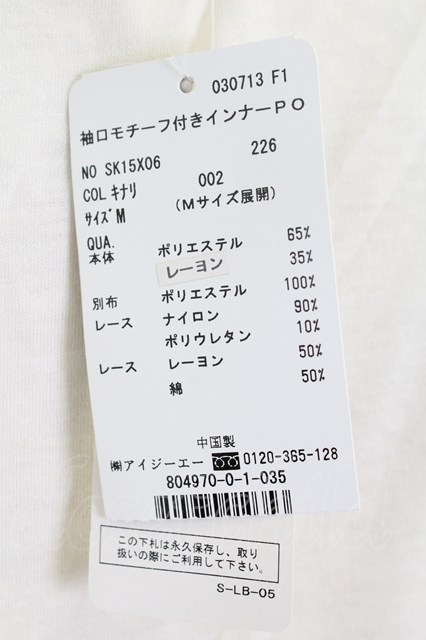 axes femme / 袖口モチーフ付インナープルオーバー キナリ T-25-10-01-008-AX-TO-HS-ZT