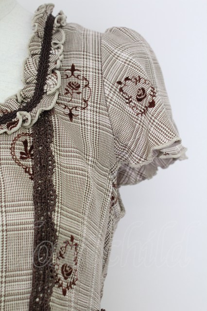 axes femme / 刺繍チェックワンピース ブラウン T-25-10-01-032-AX-OP-HS-ZT [2100020000028028-T-25-10-01-032-AX-OP-HS-ZT]