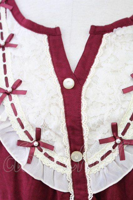axes femme / リボン付きブロッキングプルオーバー ワイン T-25-10-01-017-AX-TO-HS-ZT