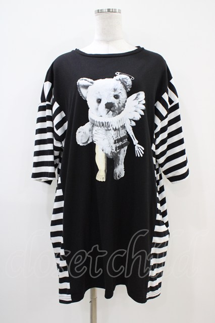 LISTEN FLAVOR / カスタムベアボーダー切替カットソーワンピース 黒 H-25-10-06-1021-PU-OP-KB-ZH