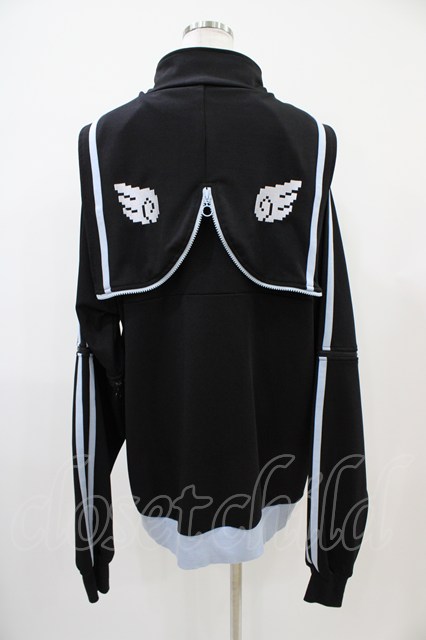 LISTEN FLAVOR / 1UPハートセーラー襟2WAYジャージパーカー ブラック×ライトブルー H-25-10-06-1036-PU-TO-KB-ZH