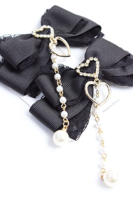 LOLITA / ビジューリボンクリップ 黒 Y-25-10-03-021-LO-ZA-SZ-ZY
