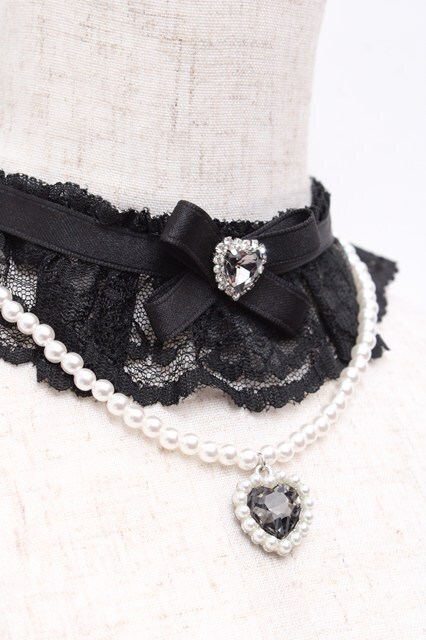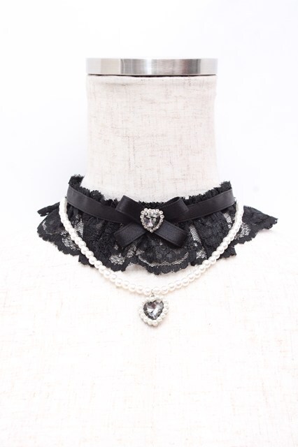Rojita / パールハートネックレスチョーカー 黒 Y-25-10-03-027-LO-AC-SZ-ZY