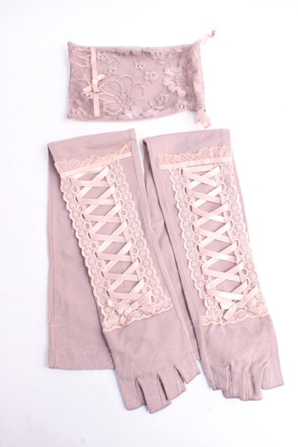 axes femme / レースアップUV手袋 ピンク Y-25-10-03-030-AX-ZA-SZ-ZY