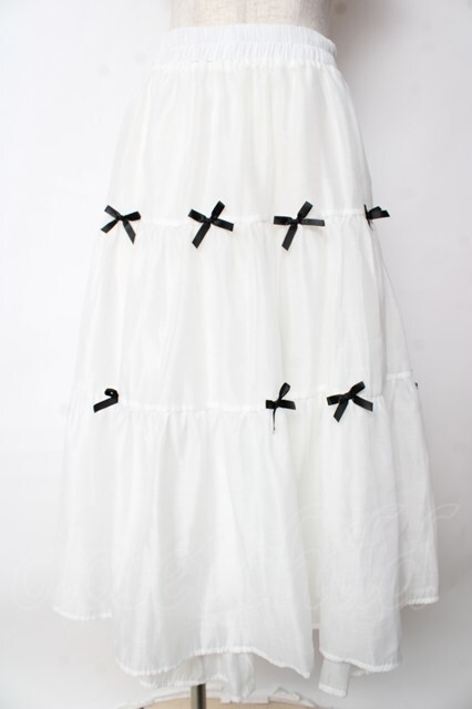 axes femme POETIQUE / プチリボンティアードスカート 白 Y-25-10-03-164-AX-SK-SZ-ZY
