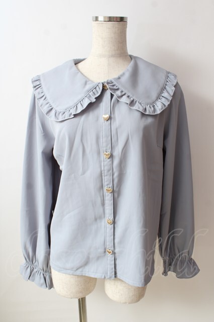 axes femme POETIQUE / ハート釦丸襟ブラウス サックス Y-25-10-03-056-AX-BL-SZ-ZY