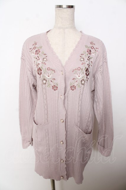 axes femme / 花刺繍ロングニットカーディガン F ピンク Y-25-10-03-068-AX-TO-SZ-ZY