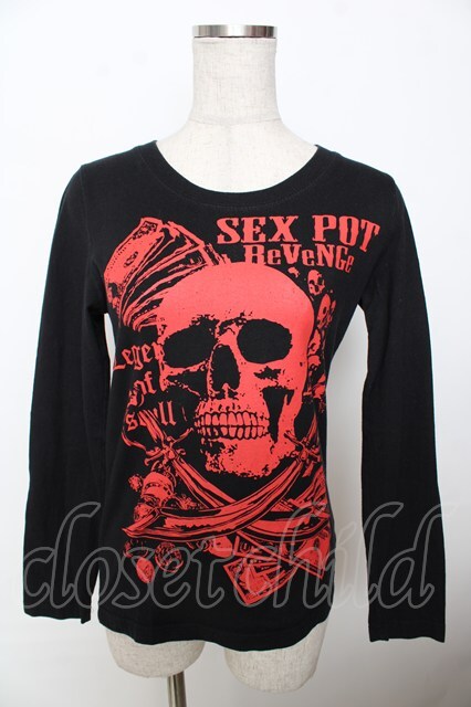 SEX POT ReVeNGe / ドクロプリントカットソー 黒 Y-25-10-03-086-SP-TO-SZ-ZY