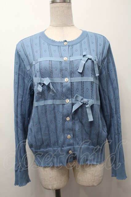 Jane Marple / リボン透かしカーディガン ブルー S-25-10-01-036-JM-TO-AS-ZS