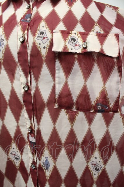 axes femme kawaii / ダイヤ柄シアーシャツ ワイン S-25-10-01-037-AX-BL-AS-ZS