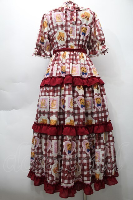 axes femme kawaii / ベアズベーカリー柄ロングワンピース 赤 S-25-10-01-044-AX-OP-AS-ZS