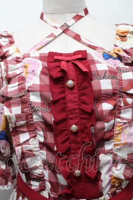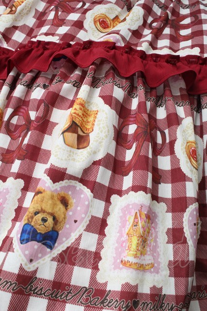 axes femme kawaii / ベアズベーカリー柄ロングワンピース 赤 S-25-10-01-044-AX-OP-AS-ZS [2100020000031802-S-25-10-01-044-AX-OP-AS-ZS]
