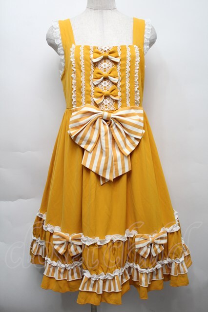Doll Paradise / ストライプリボンジャンパースカート からし S-25-10-01-047-LO-OP-AS-ZS [2100020000031778-S-25-10-01-047-LO-OP-AS-ZS]