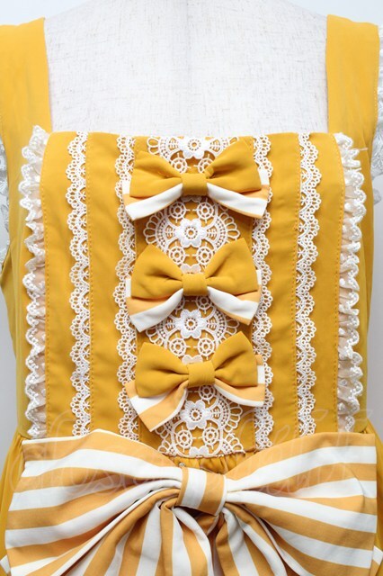 Doll Paradise / ストライプリボンジャンパースカート からし S-25-10-01-047-LO-OP-AS-ZS