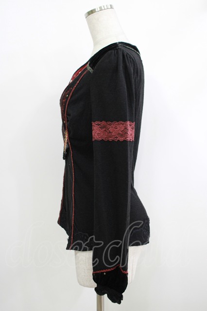 Ozz oneste / 刺繍ニットソー 黒×赤 H-25-10-08-1058-OO-TO-KB-ZH [2100030000073930-H-25-10-08-1058-OO-TO-KB-ZH]