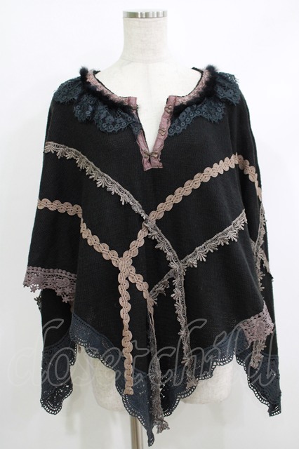 OZZ ANGELO / ニットポンチョ 黒 H-25-10-08-1059-OO-TO-KB-ZH
