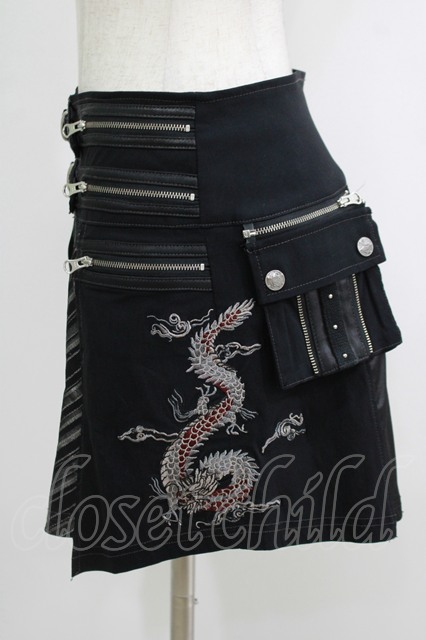 Ozz Croce / 龍刺繍オーバースカート 黒 H-25-10-08-1036-OO-SK-KB-ZH