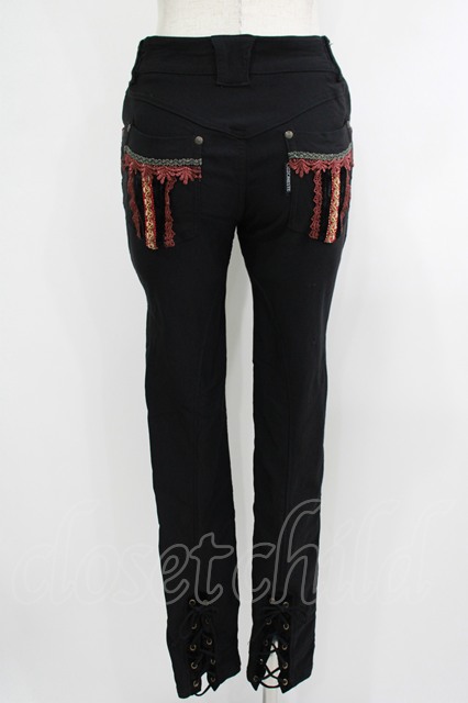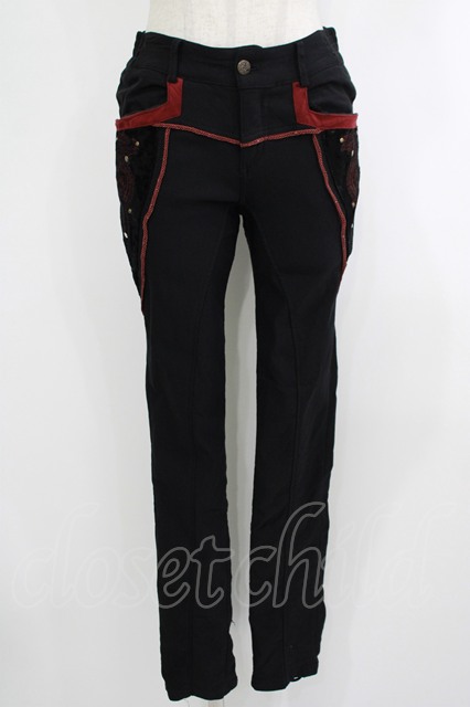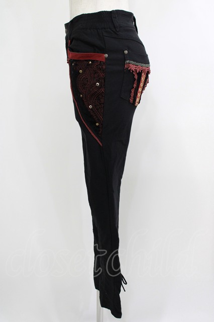 Ozz oneste / 刺繍ベロア切替パンツ 黒×赤 H-25-10-08-1028-OO-PA-KB-ZH [2100030000073931-H-25-10-08-1028-OO-PA-KB-ZH]