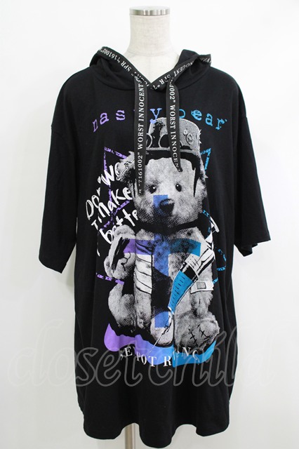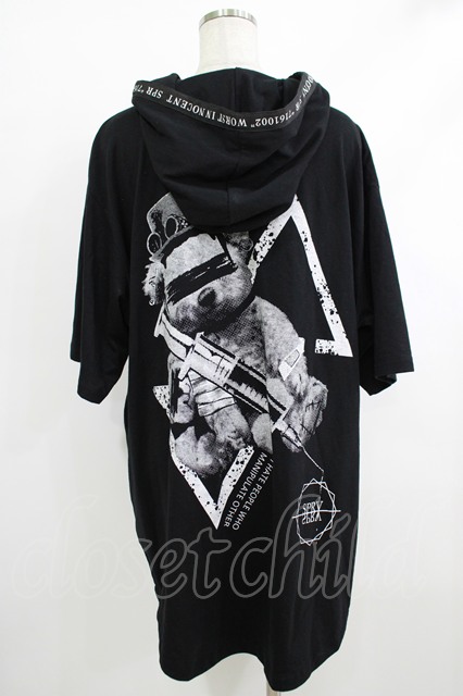 SEX POT ReVeNGe / プリント半袖ロングプルパーカー 黒 H-25-10-08-1051-SP-TO-KB-ZH