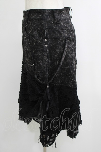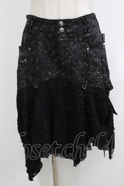 Ozz Croce / ダメージカットイレギュラースカート 黒 H-25-10-08-1035-OO-SK-KB-ZH