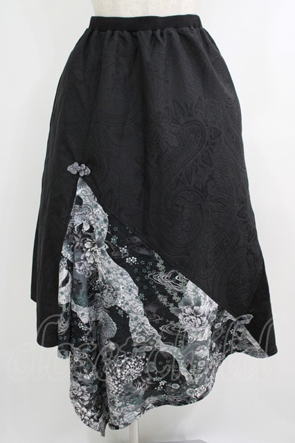 Qutie Frash / 2023-宵鶴-アシメロングスカート 黒 H-25-10-08-1009-QU-SK-KB-ZH [2100030000074107-H-25-10-08-1009-QU-SK-KB-ZH]