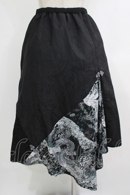 Qutie Frash / 2023-宵鶴-アシメロングスカート 黒 H-25-10-08-1009-QU-SK-KB-ZH