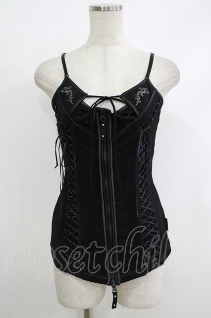 Ozz Croce / フロントZIPビスチェキャミ 黒 H-25-10-08-1067-OO-TO-KB-ZH