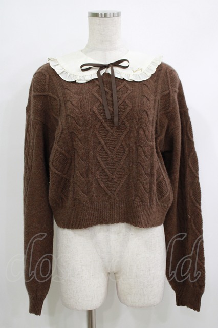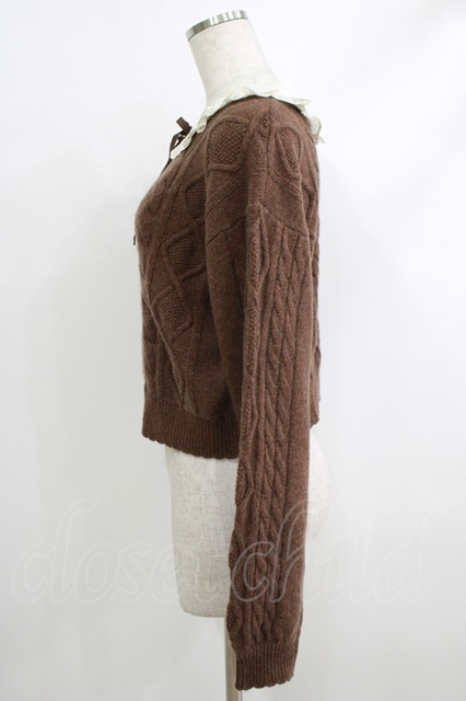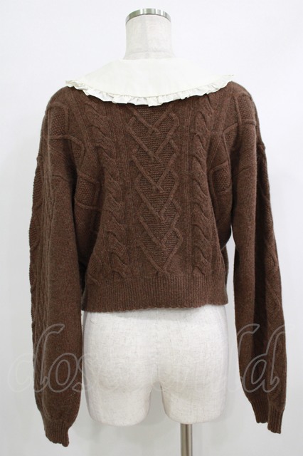 Emily Temple cute / 衿付きケーブル編みニット ブラウン H-25-10-08-1062-ET-BL-KB-ZH