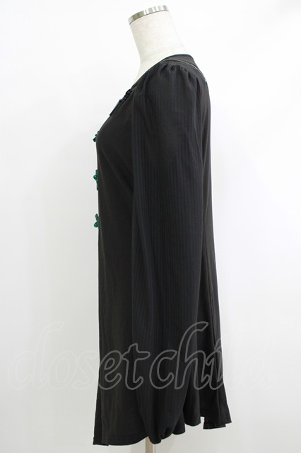 Qutie Frash / チャイナパフスリーブチュニック ブラック×グリーン H-25-10-08-1060-QU-TO-KB-ZH