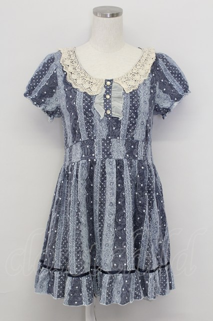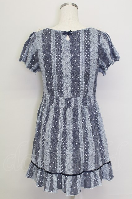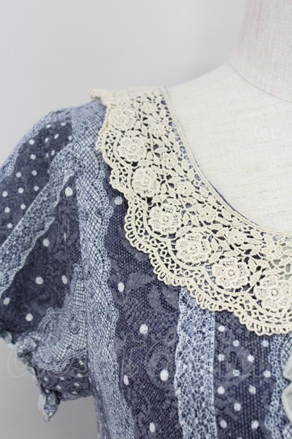 axes femme / レース襟プリントチュニック ブルー T-25-10-02-003-AX-OP-HR-ZT [2100020000028203-T-25-10-02-003-AX-OP-HR-ZT]