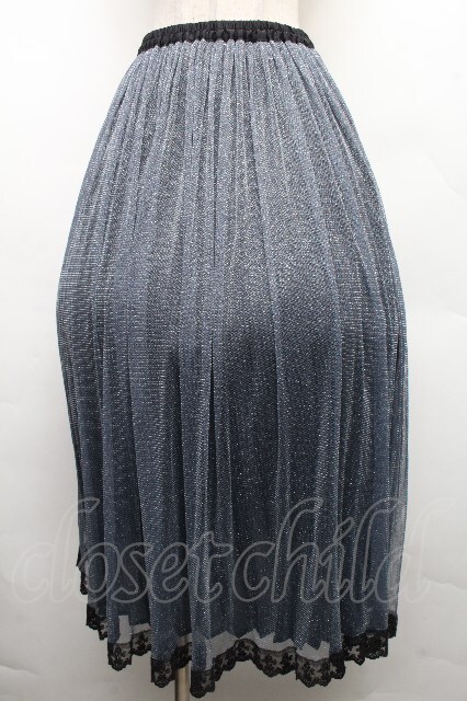 axes femme POETIQUE / ラメプリーツスカート ブルーx黒 S-26-04-01-1021-AX-SK-HR-ZS