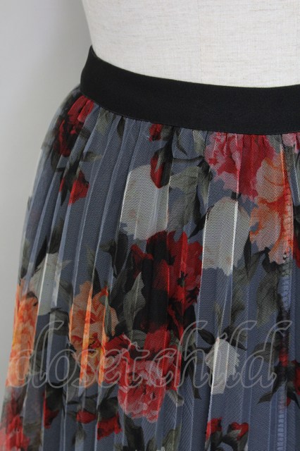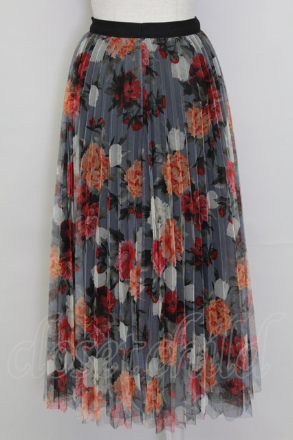 axes femme / 花柄チュールプリーツスカート グレー T-25-10-02-023-AX-SK-HR-ZT