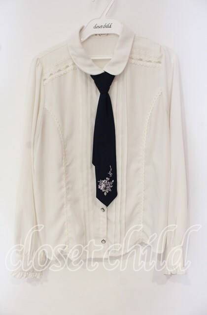 axes femme / 刺繍ネクタイ付ブラウス シロ×ネイビー O-25-10-02-007-AX-BL-IG-OS [2100080000060170-O-25-10-02-007-AX-BL-IG-OS]
