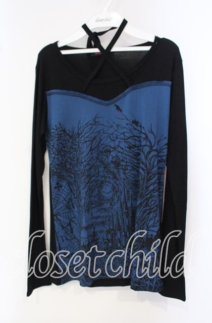 ALGONQUINS / キャッスルptカットソー ブラック×ブルー O-25-10-02-014-AL-TO-IG-OS