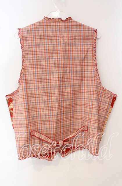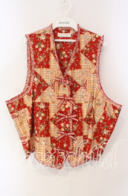 PINK HOUSE / ローズチェックパッチワークベスト【お直しあり】 アカ O-25-10-02-021-LO-TO-IG-OS