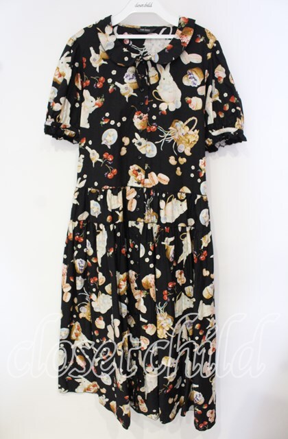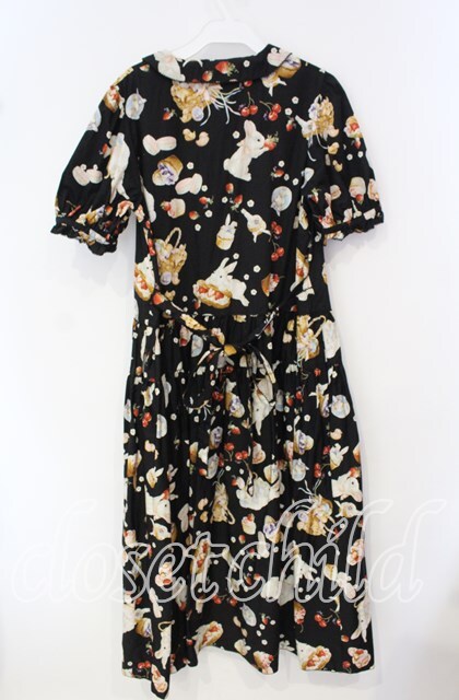 PINK HOUSE / スイーツスプリングバニープリントワンピース クロ O-25-10-02-004-LO-OP-IG-OS