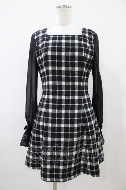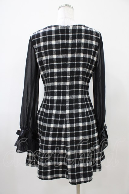 Ank Rouge / シフォン袖チェックワンピース M ブラック H-25-10-07-1036-CA-OP-NS-ZH [2100030000069681-H-25-10-07-1036-CA-OP-NS-ZH]