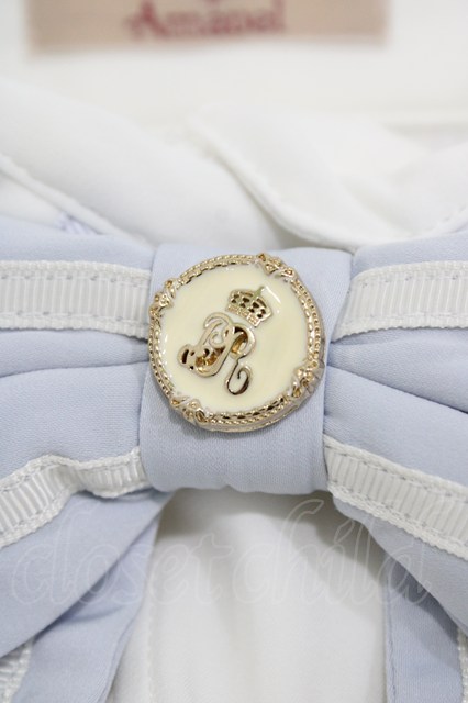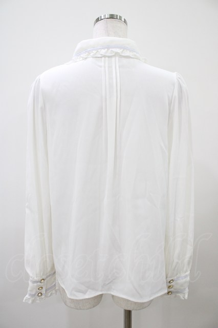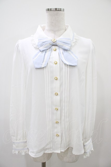 Amavel / 配色ライン入り BIGリボンタイ付長袖ブラウス Free オフ/サックス H-25-10-07-1053-CA-BL-NS-ZH [2100030000072522-H-25-10-07-1053-CA-BL-NS-ZH]