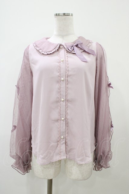 axes femme kawaii / ドットチュールブラウス M ラベンダー H-25-10-07-1060-AX-BL-NS-ZH