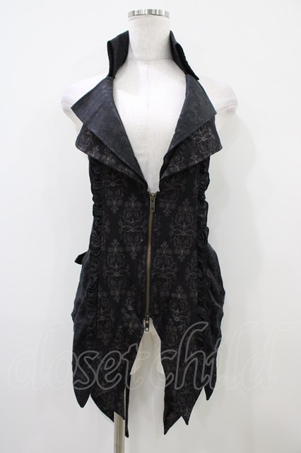 h.naoto Blood / プリント切替ホルターZIPベスト 黒 H-25-10-09-1041-HN-TO-KB-ZH