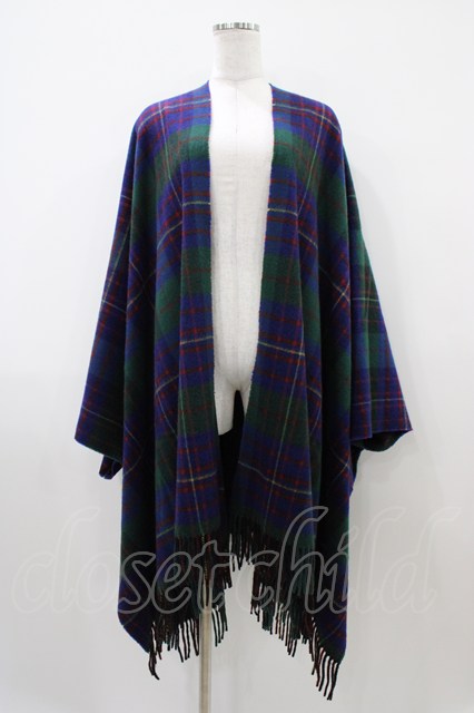 Jane Marple Dans Le Salon / ビッグタータンストールマント ネイビー×グリーン H-25-10-09-1061-JM-JA-KB-ZH